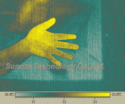 2. 手掌距離物件背後大約5cm ,不直接接觸經由空氣當傳導介質 (左圖:可見光; 右圖:紅外線熱像測溫圖)